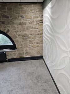 The result was a 2 new beautiful designer walls in CDUK’s new office. The unique patterns carved into the Corian added a touch of luxury and sophistication to the space. The seamless integration of the walls with the existing stonework was a testament to the precision and attention to detail of the team at Parametric Walls.